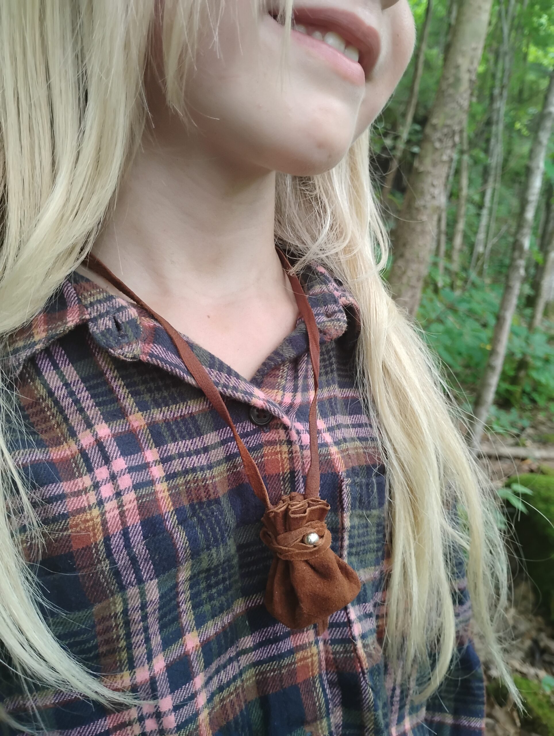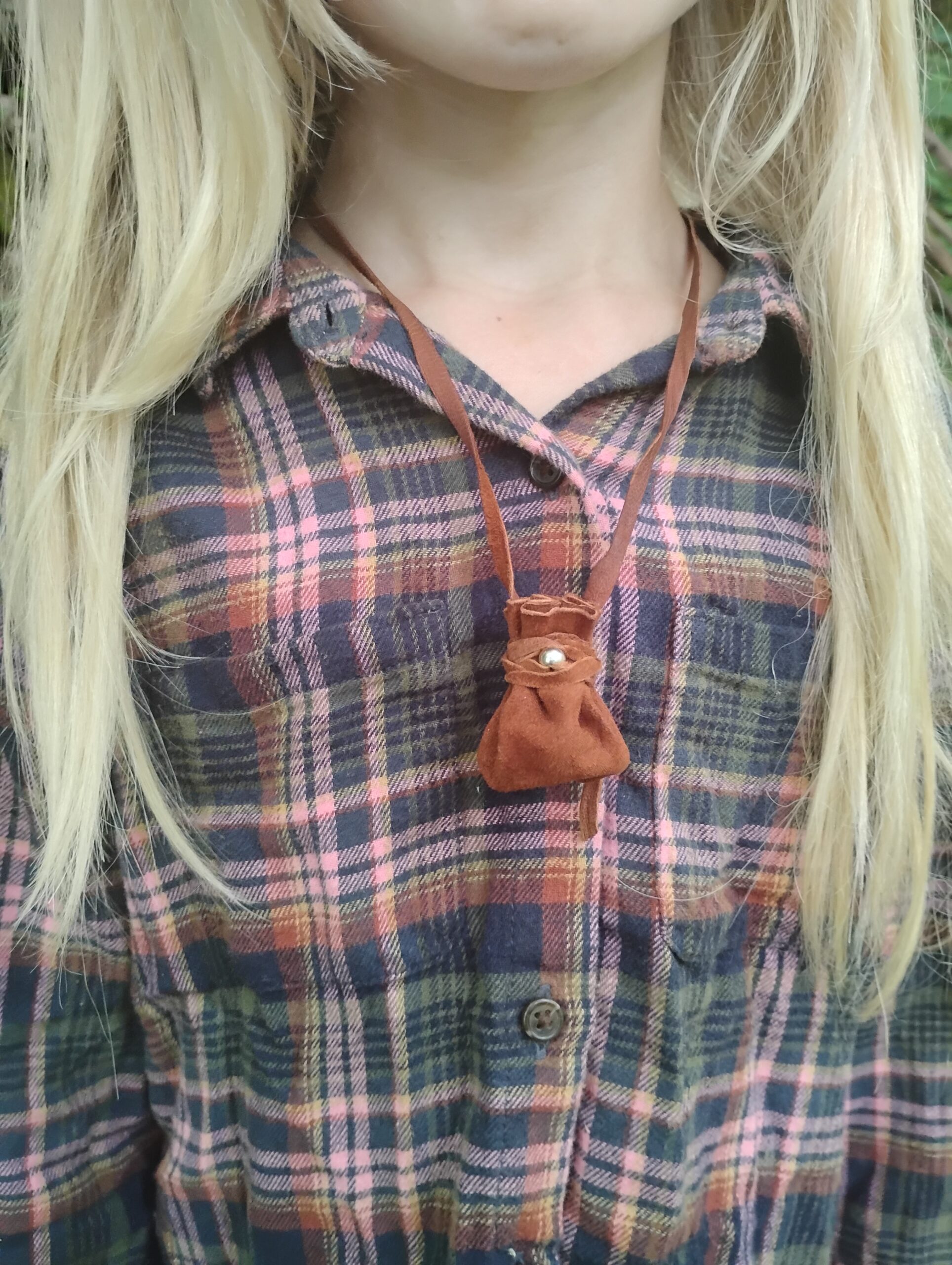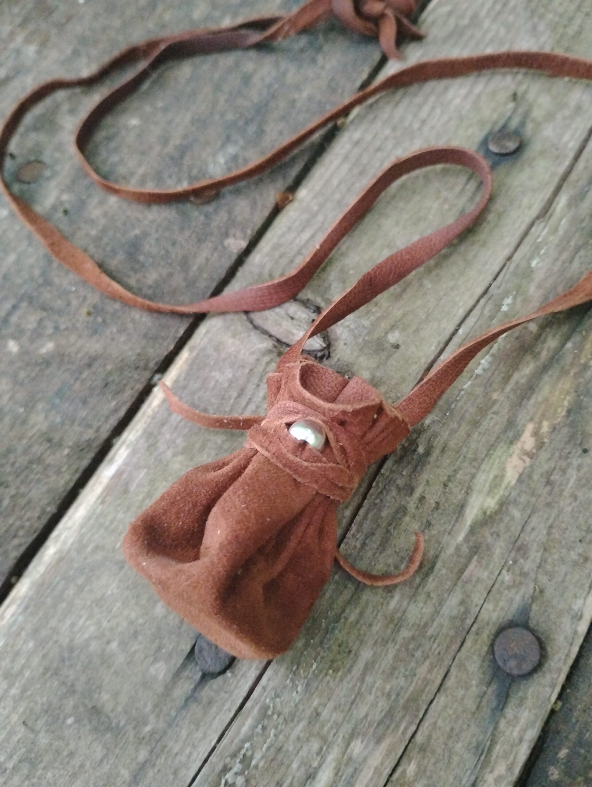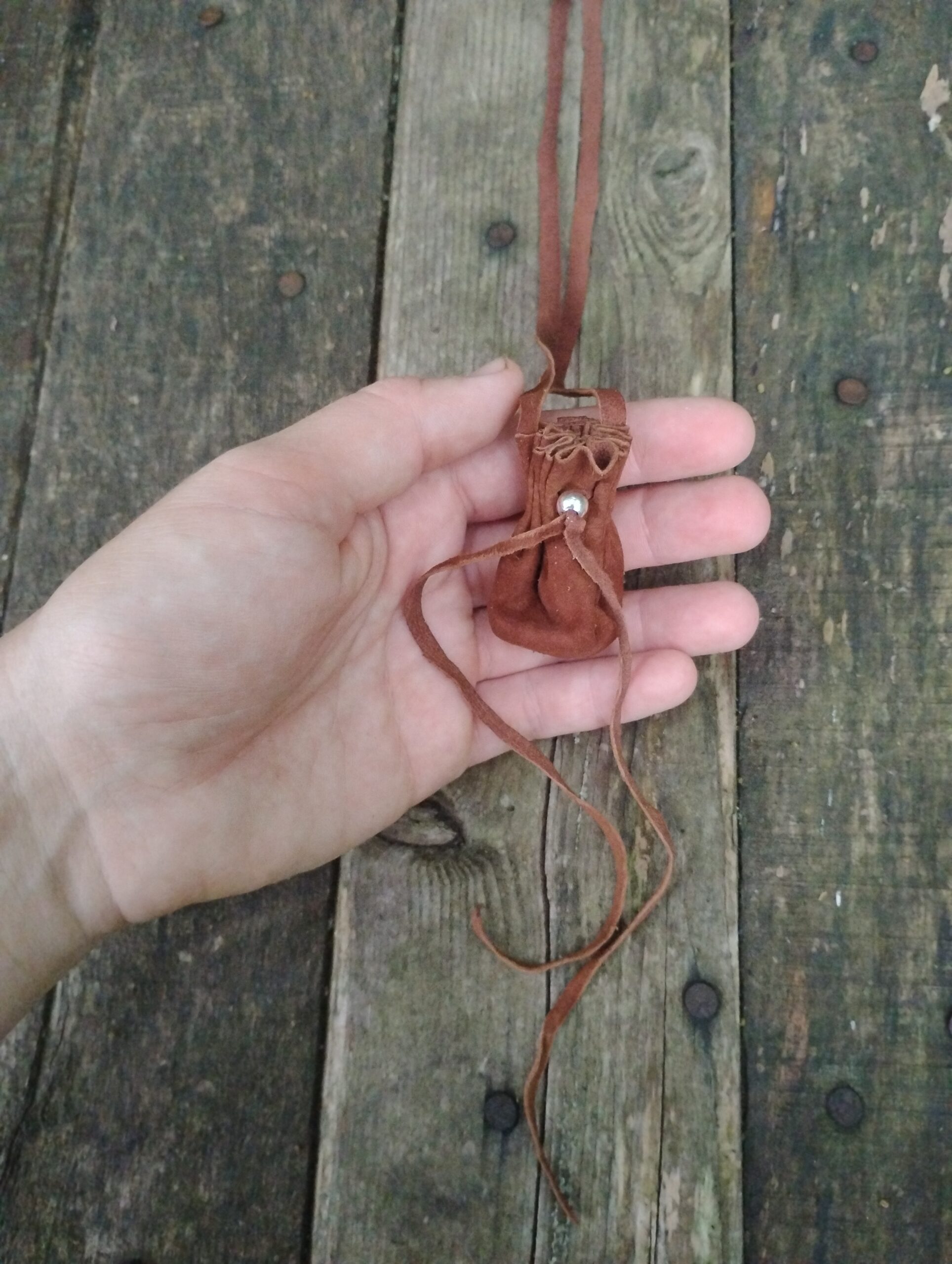 This is a one of a kind, hand crafted silver and buckskin leather necklace pouch! Made with usability in mind, we have hand cut, punched, and stitched together to make a tiny token bag that is just perfect for everyday wear. What you put in it, is up to you! Use for medicine, good luck charms, crystals, amulets, sentimental items.. the possibilities are endless. A minimalist, neutral brown with silver accents makes it work for men, women, or children making it just right to give as a gift for your loved ones. We chose buckskin leather for its’ comfort and durability. Comes with a generous amount of leather cordage. This listing is for RAW BUCKSKIN LEATHER. If you would like a necklace treated with mink oil, please see our other listing here: