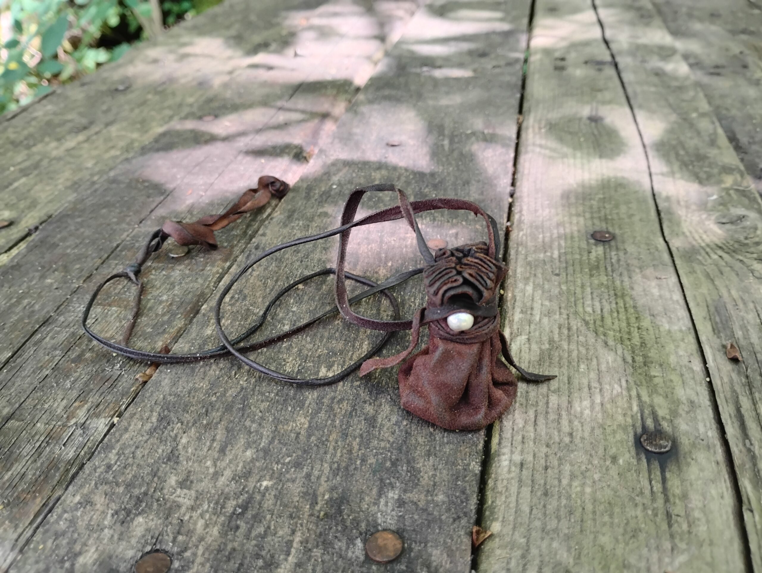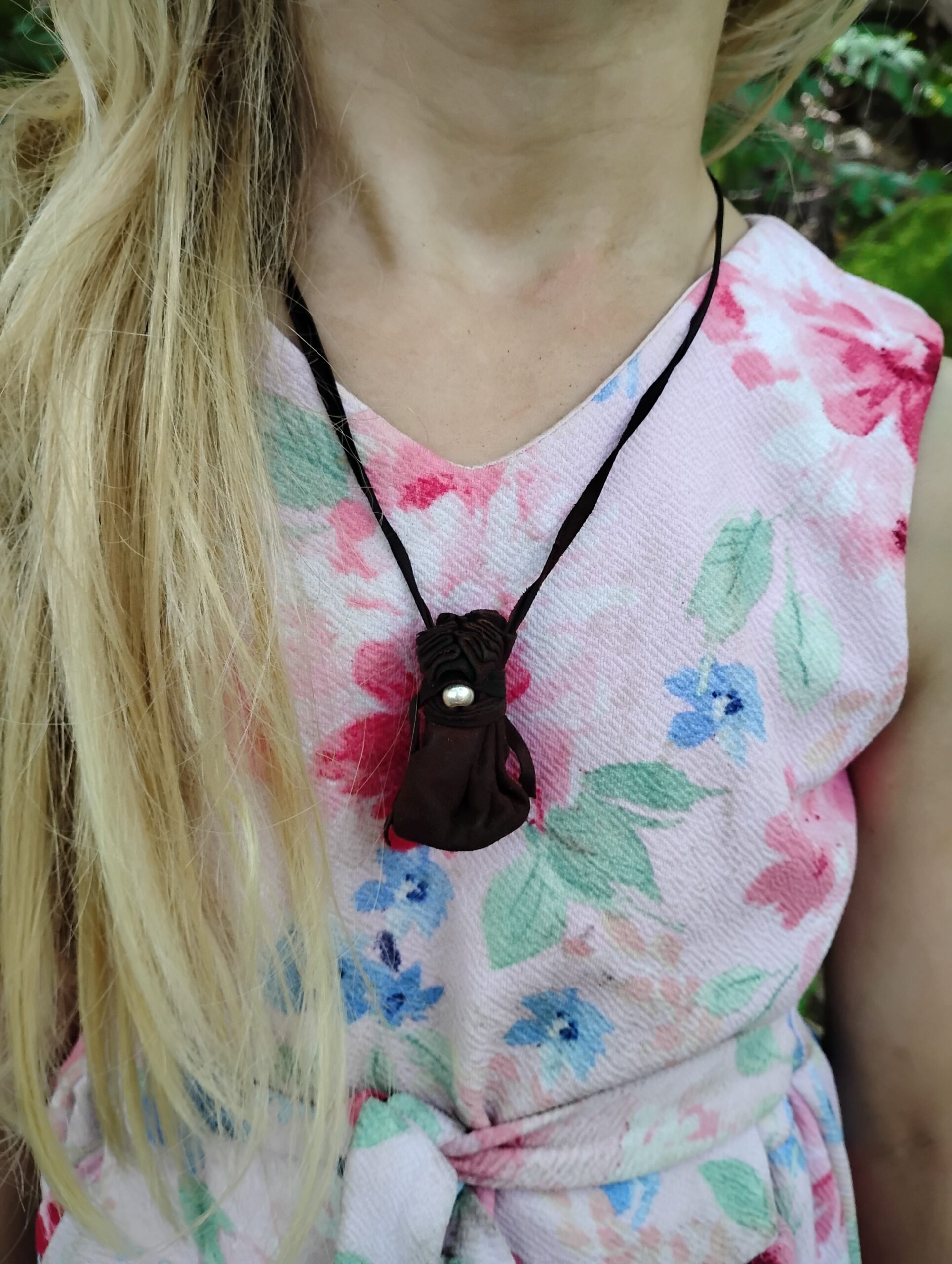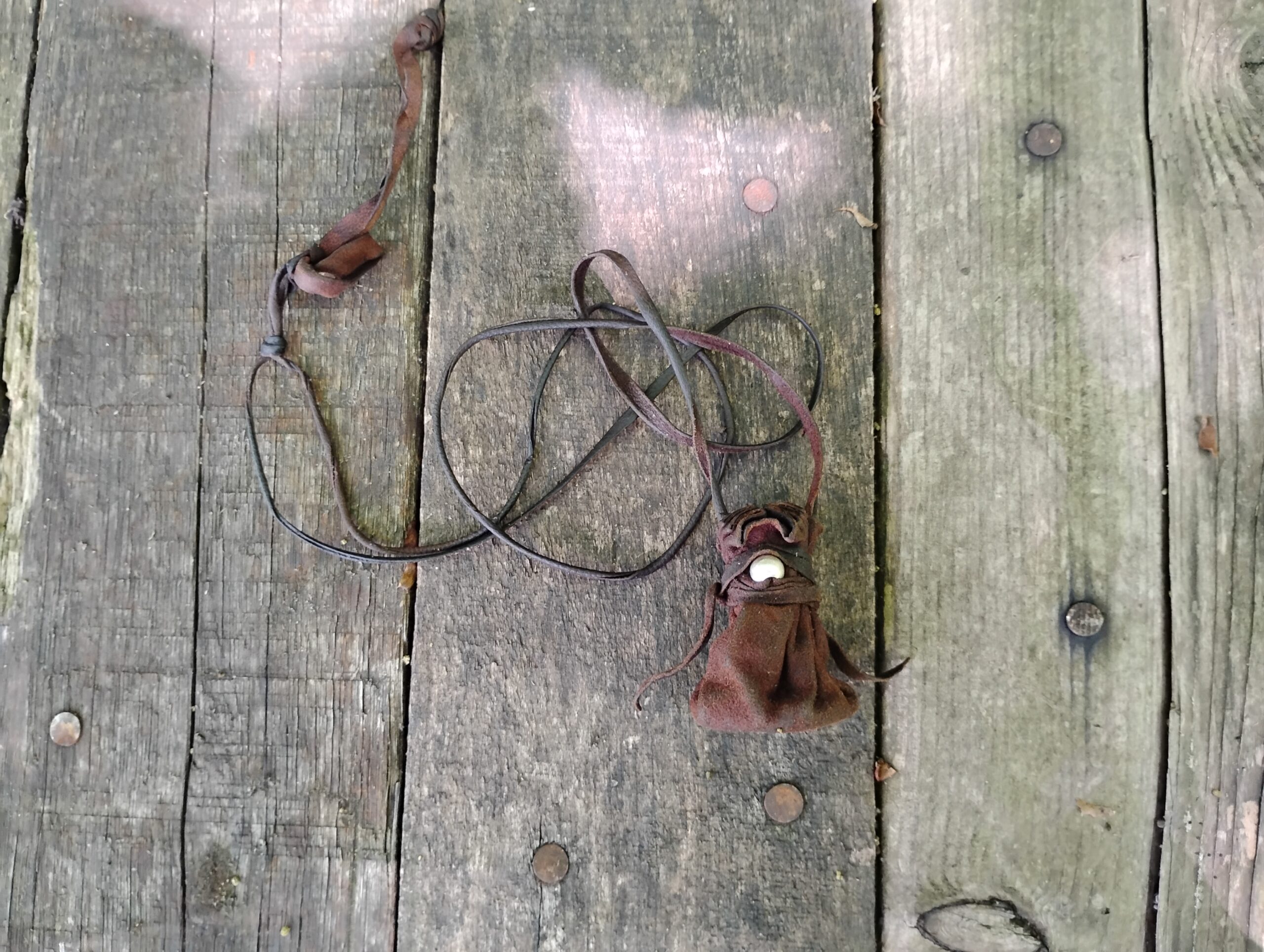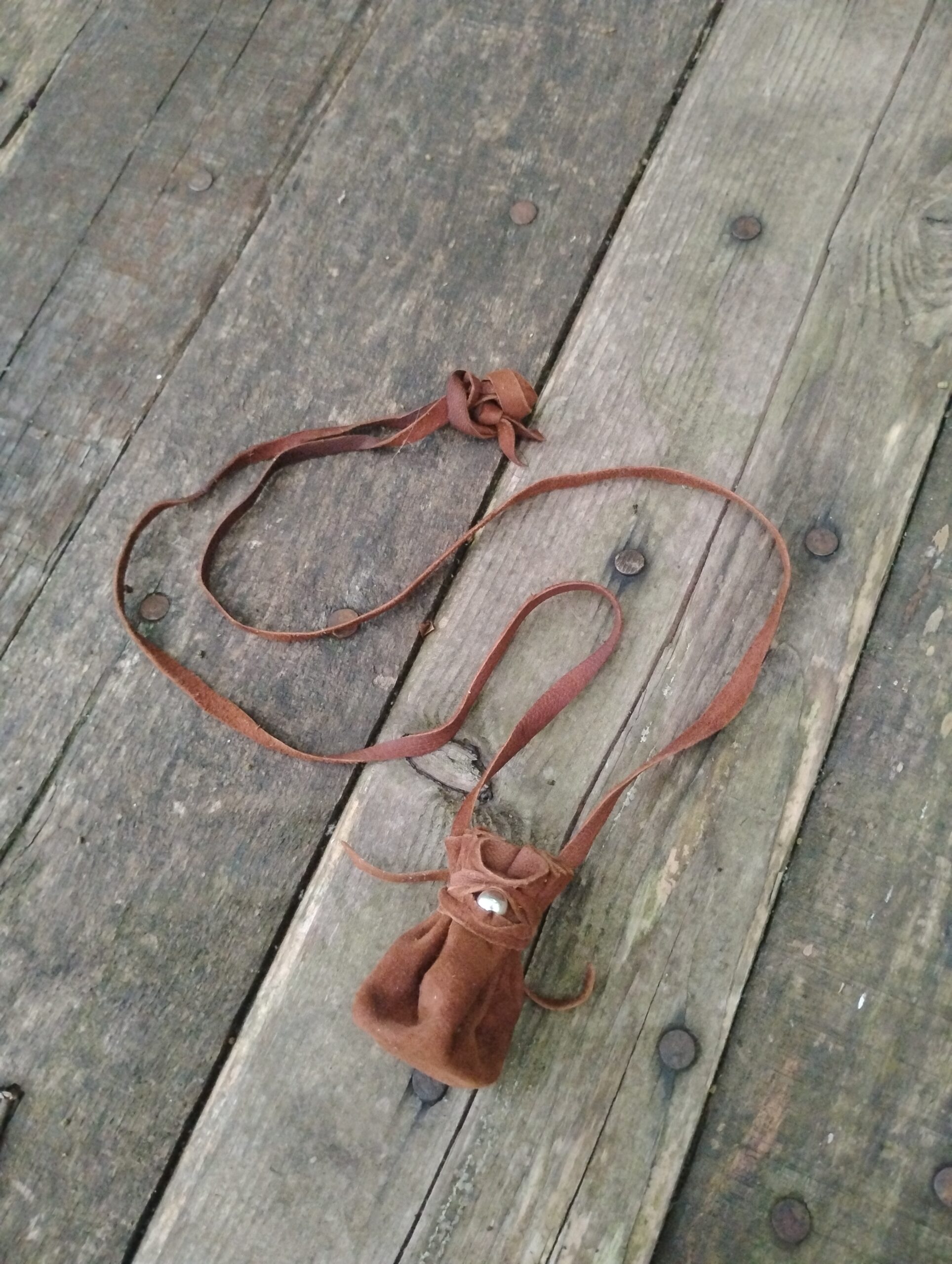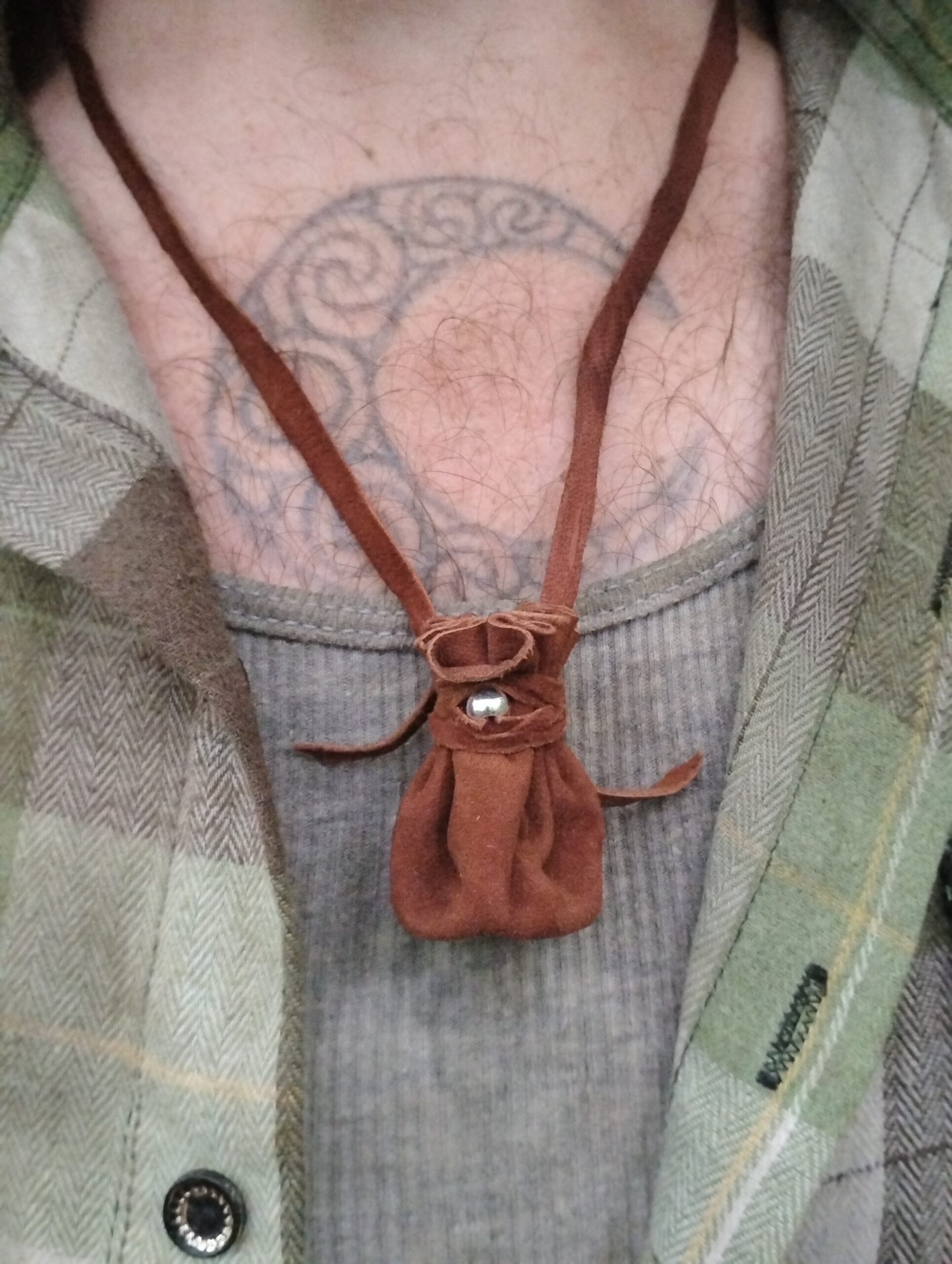 This is a one of a kind, hand crafted silver and buckskin leather necklace pouch! Made with usability in mind, we have hand cut, punched, and stitched together to make a tiny token bag that is just perfect for everyday wear. What you put in it, is up to you! Use for medicine, good luck charms, crystals, amulets, sentimental items.. the possibilities are endless. A minimalist, neutral brown with silver accents makes it work for men, women, or children making it just right to give as a gift for your loved ones. We chose buckskin leather for its’ comfort and durability. Comes with a generous amount of leather cordage. This listing is for TREATED BUCKSKIN LEATHER. If you would like a leather necklace that is raw & untreated, please see our other listing here.