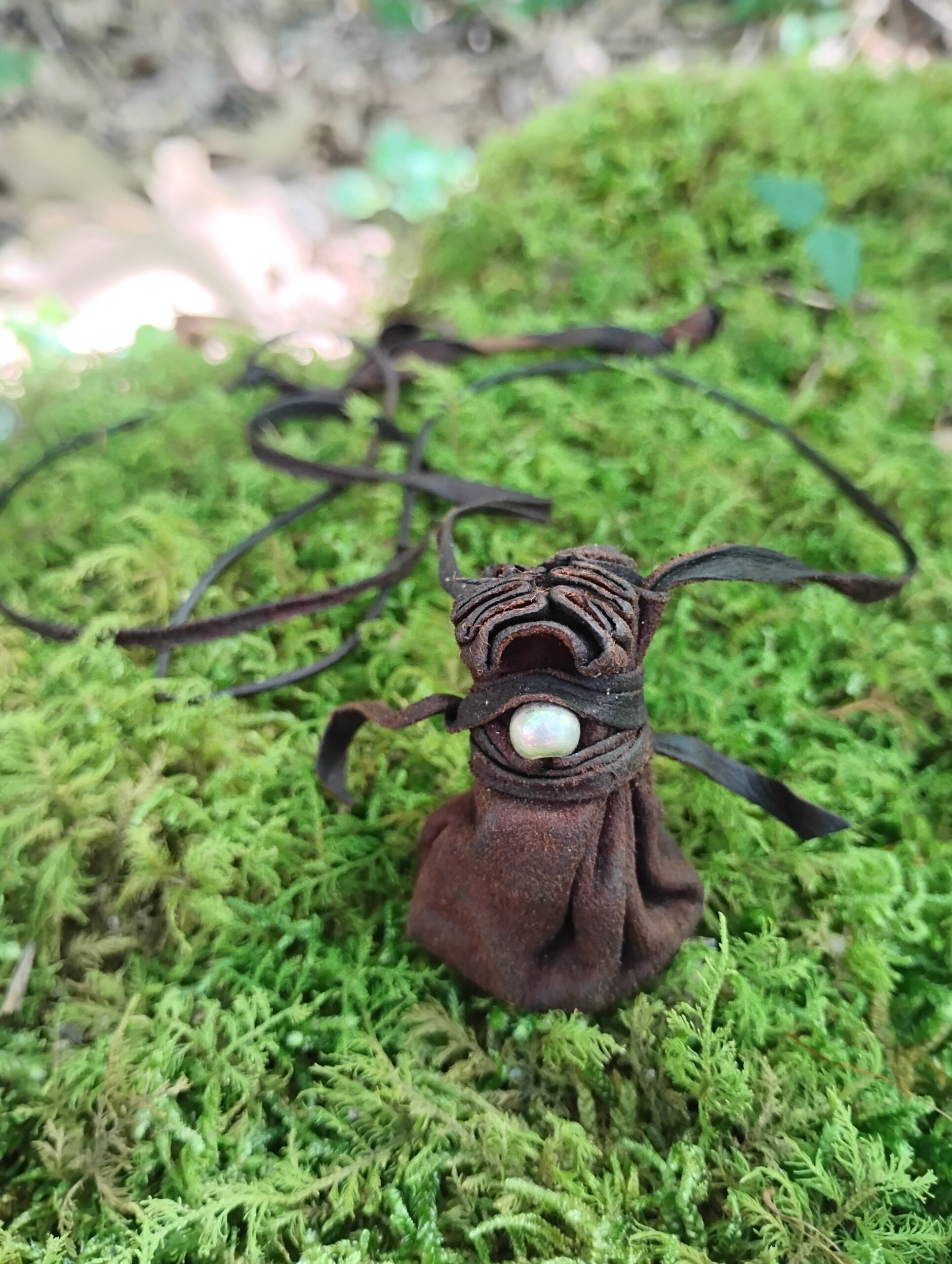 Materials: Solid .925 sterling silver bead & buckskin leather. Treated with mink oil for aiding in water resistance as well as darkening the appearance of the leather and softening the bag. Made to order. Approximate handling time varies – may take up to 3 weeks. Please email us for any questions at info@steepinthewoods.com